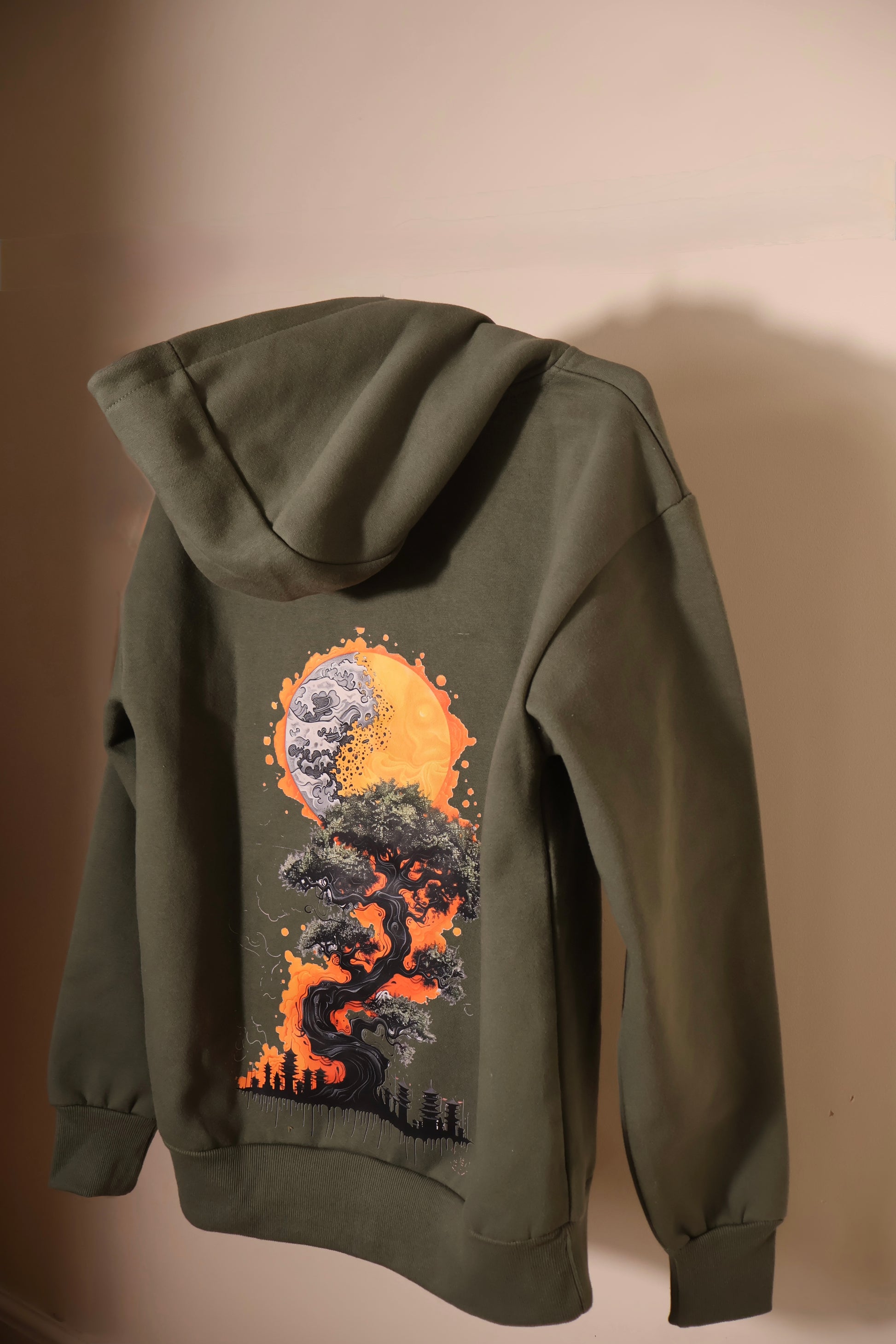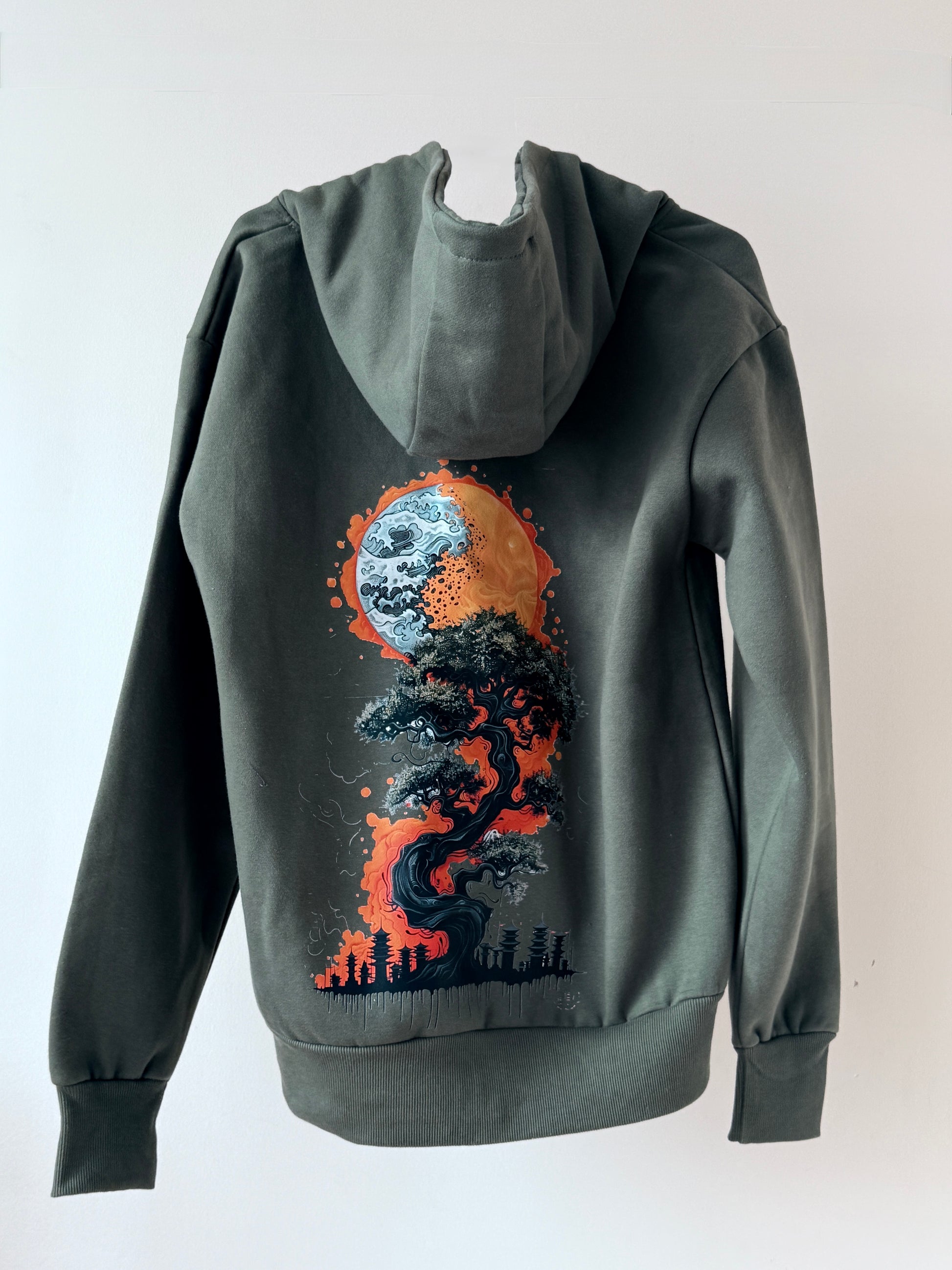 Crafted from premium 420 GSM heavyweight fabric, the Moda Ricca Earthy Green Zipper delivers durability, structure, and comfort in every wear. The Japanese-inspired sun art detail adds a touch of cultural elegance, transforming this piece into more than just a hoodie—it’s wearable art.